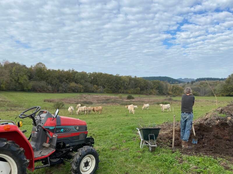 Onder toeziend oog van de koeien (we hebben deze winter ons grasland uitgeleend aan de boer die ons hooi doet) zijn we begonnen...